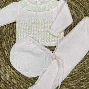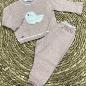 • Conjunto de lana ‘Pio pio’ rosa empolvado