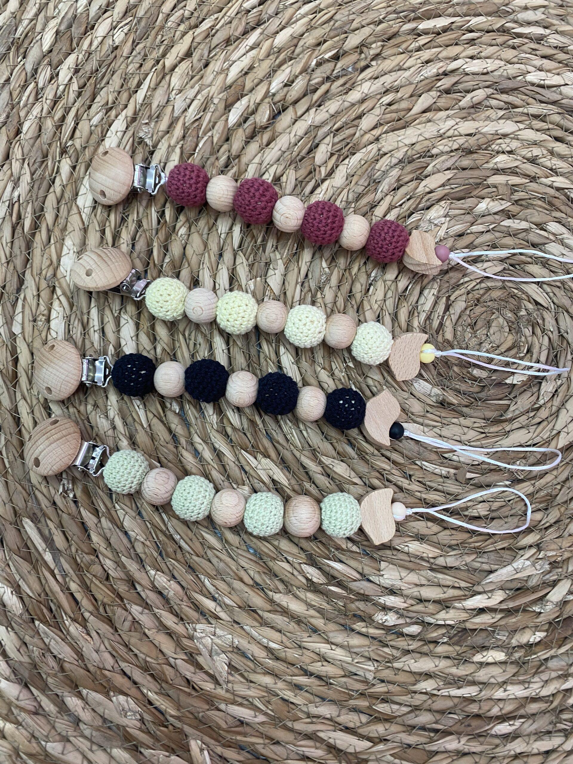 Chupetero con abalorios de crochet.