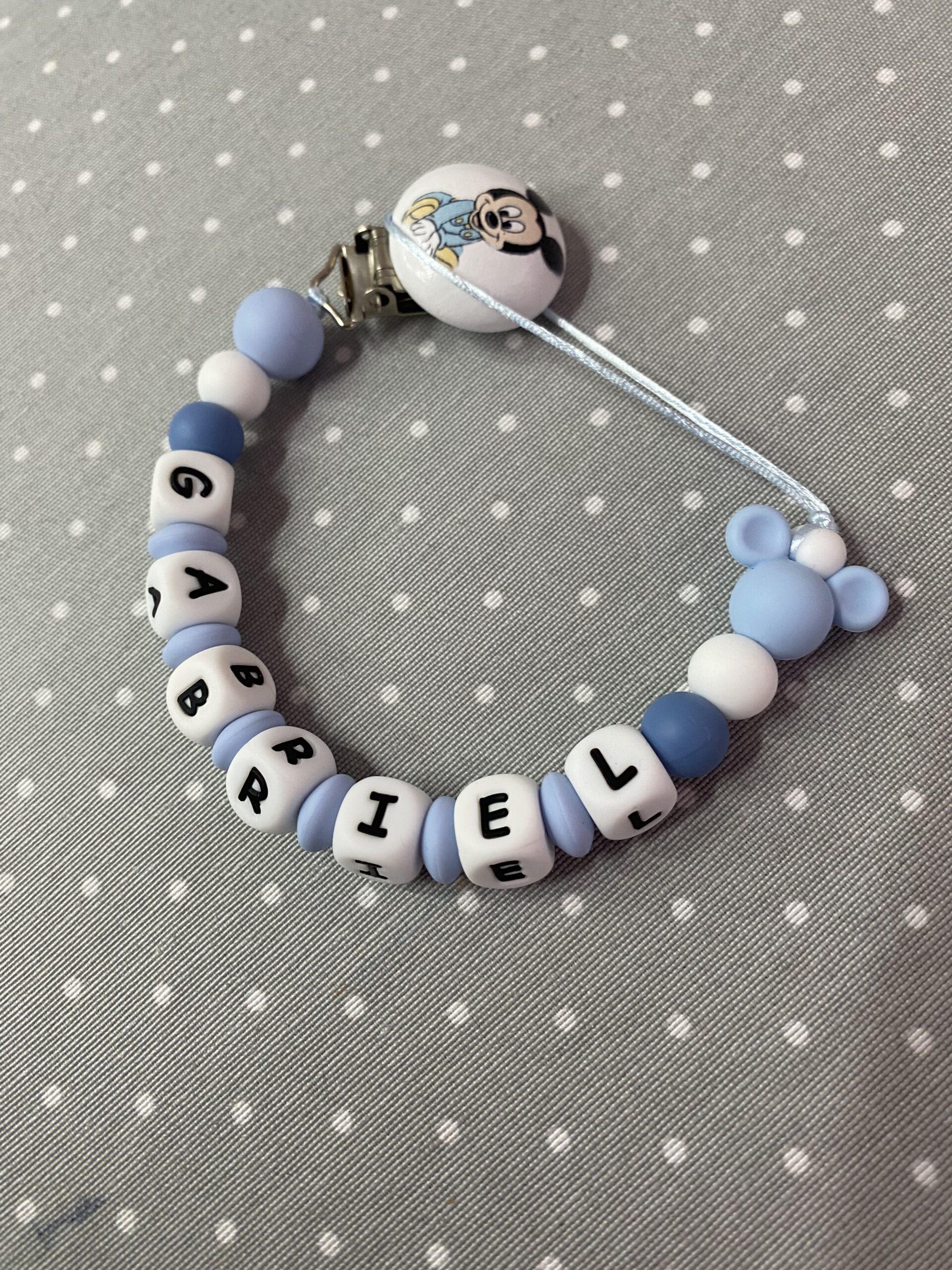 Chupetero con detalle de broche estampado. chupetero totalmente personalizado, hecho a mano con abalorios de silicona alimenticia libre de BPA. AÑADIR NOMBRE EN NOTAS al finalizar el pedido.