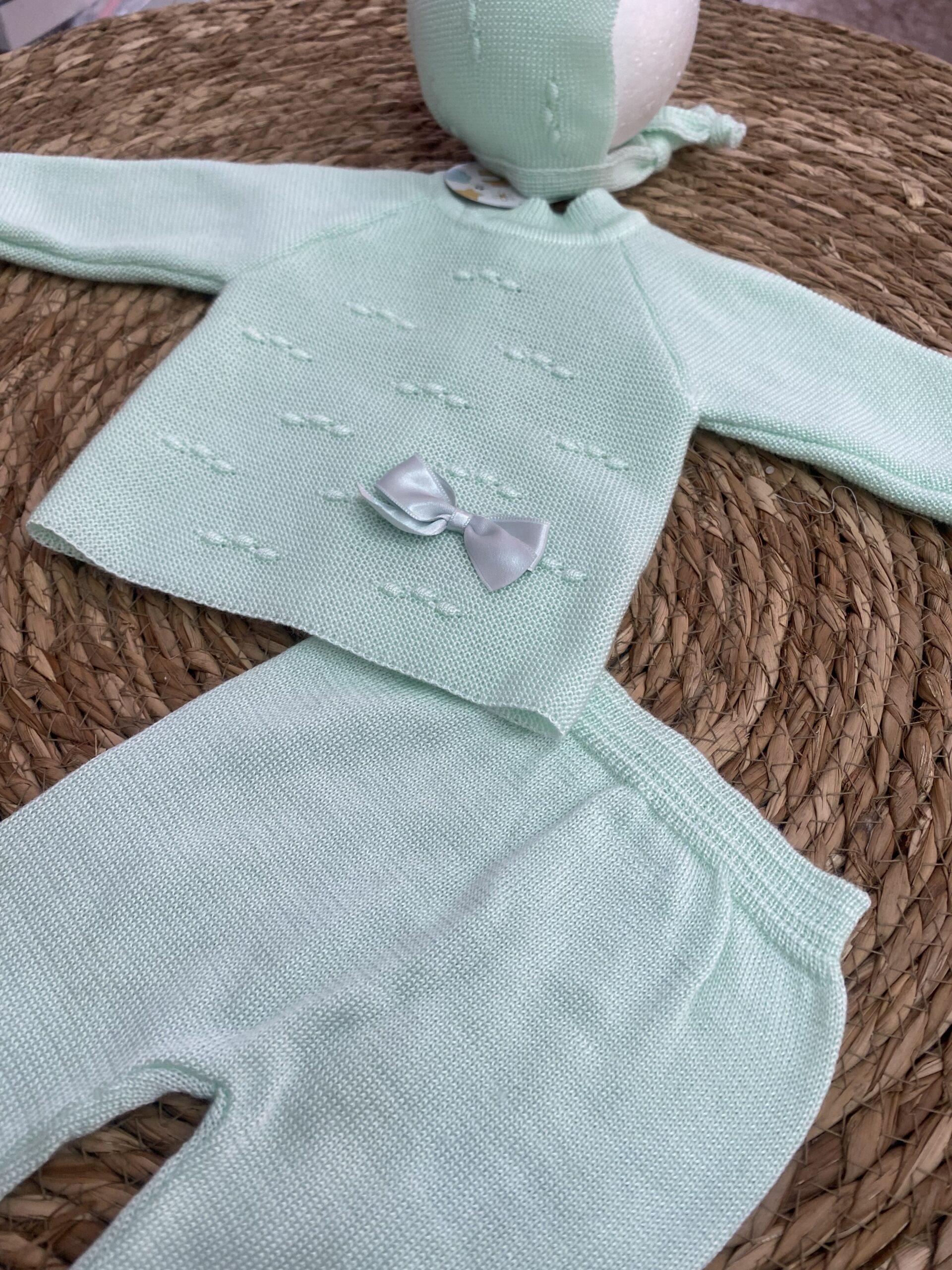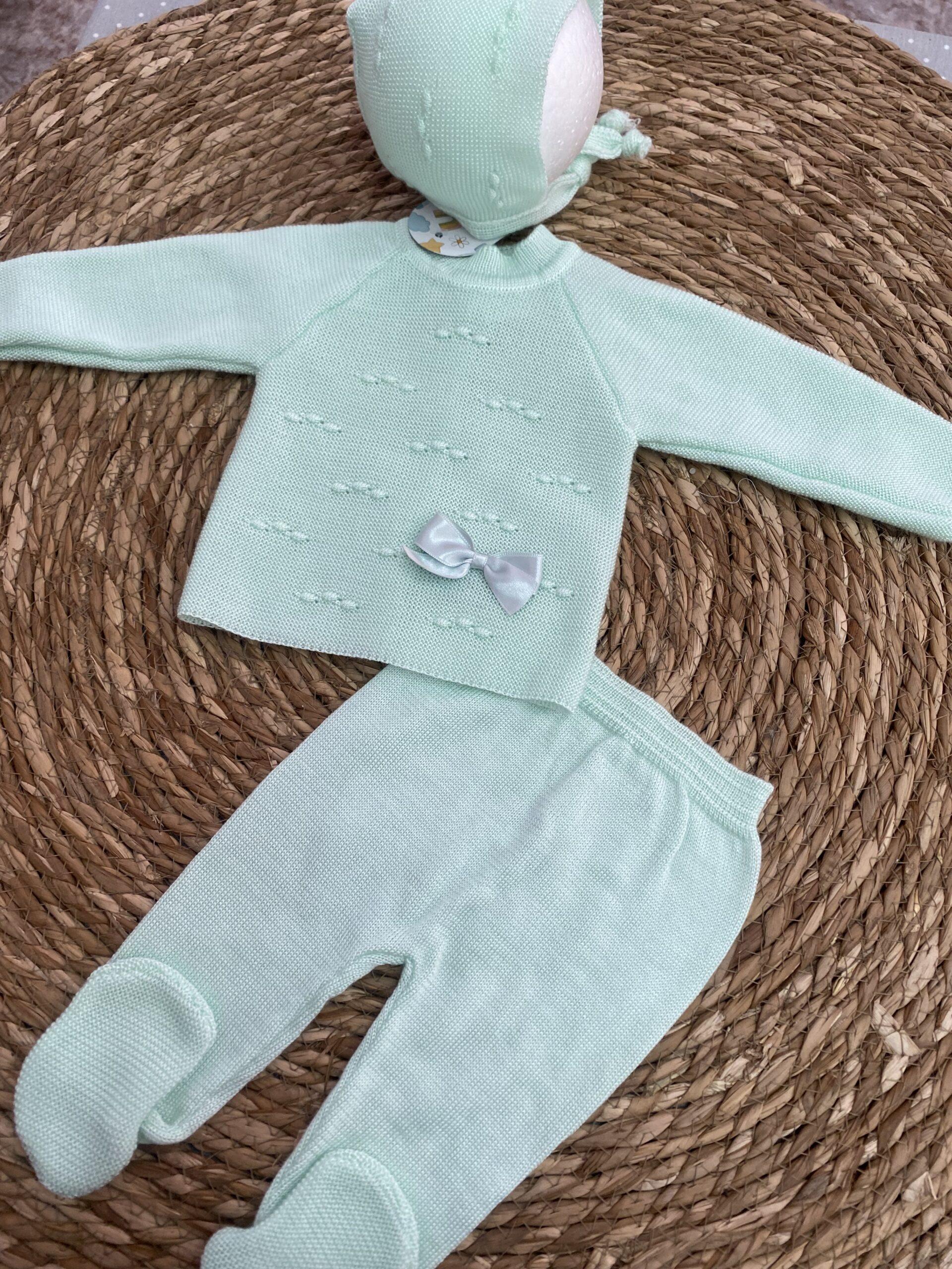 Conjunto de hilo compuesto por tres piezas en color verde agua. Unisex.