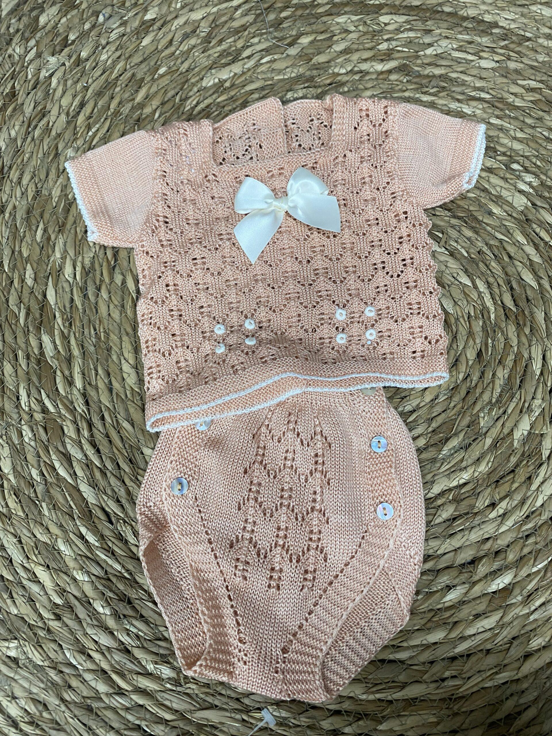 Conjunto de hilo de dos piezas en manga corta en color salmón