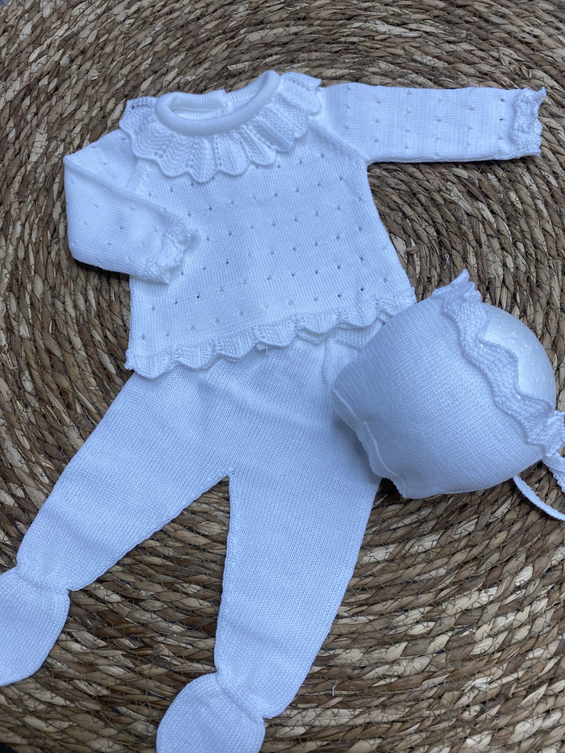 Bonito conjunto unisex entre color blanco compuesto por tres piezas.