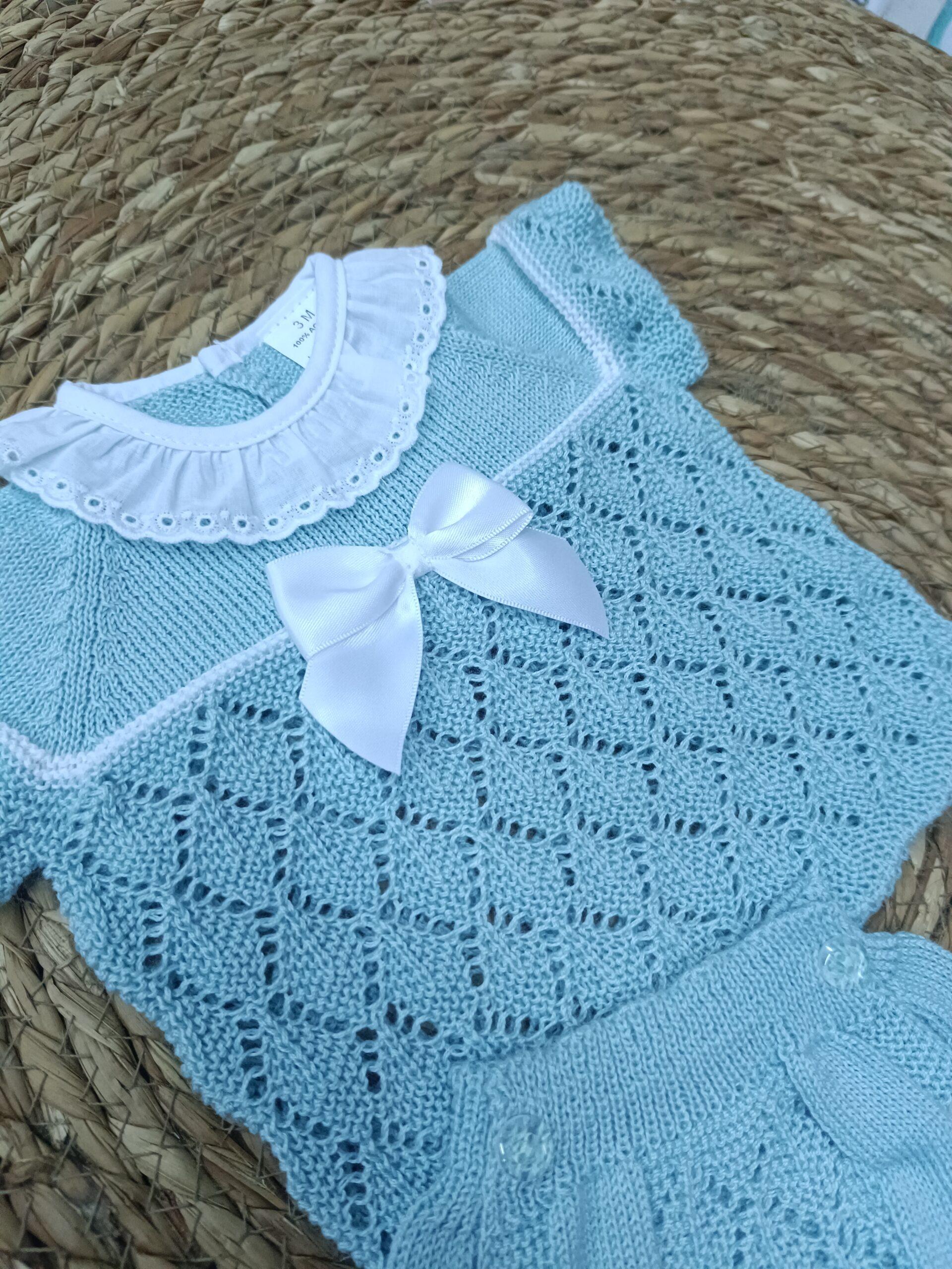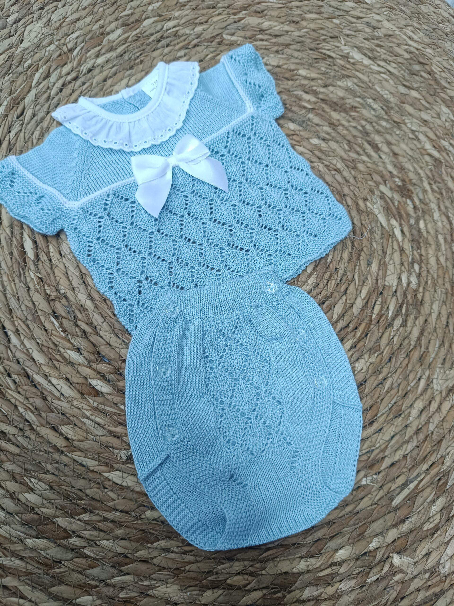 Conjunto de hilo de dos piezas ideal para verano. En color verde agua. Unisex. Correcto de tallaje.