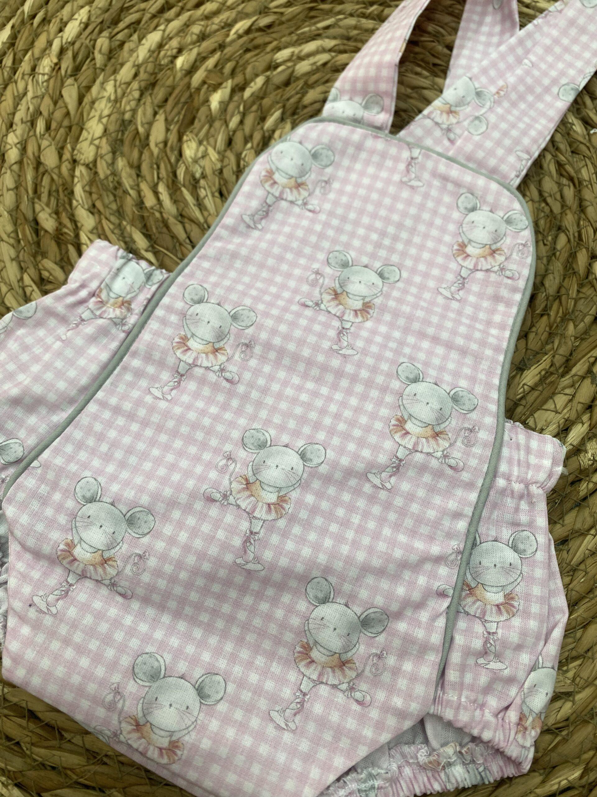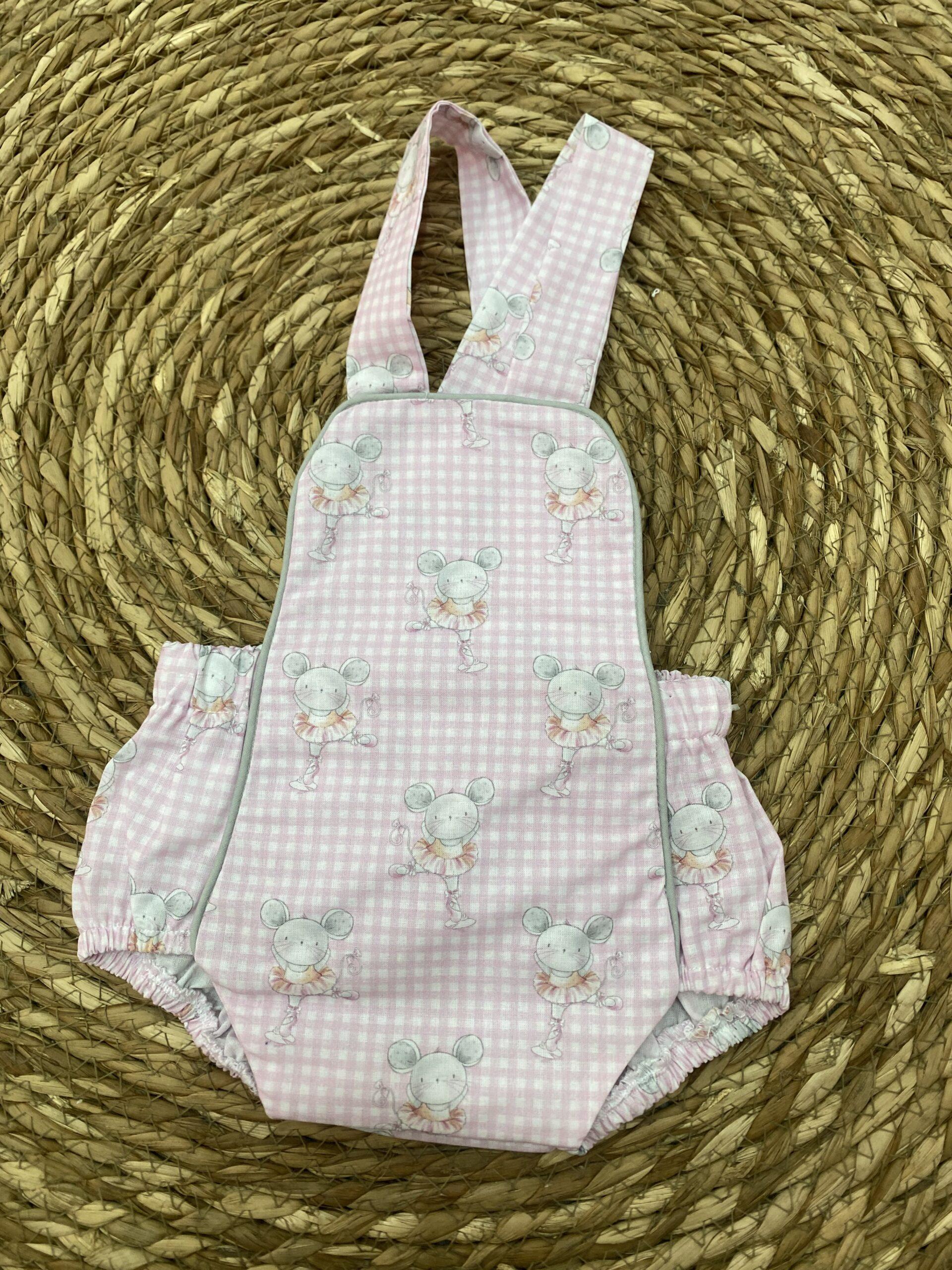 Pelele de tela en rosita estampado . Ideal para primavera- verano para combinar con bodys. Confección nacional en tallaje completo.