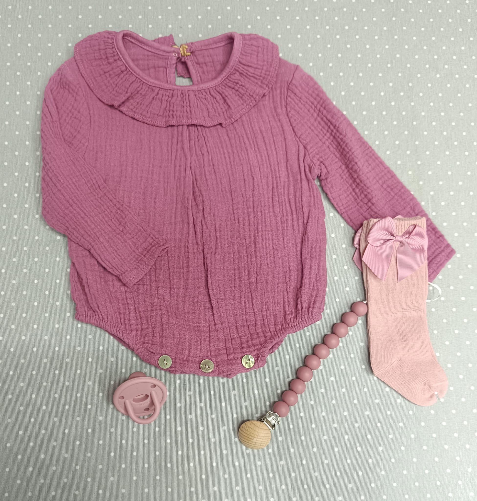 Bonito pelele en manga larga en tejido de bambula, 100% algodón. Ideal para el entre tiempo.