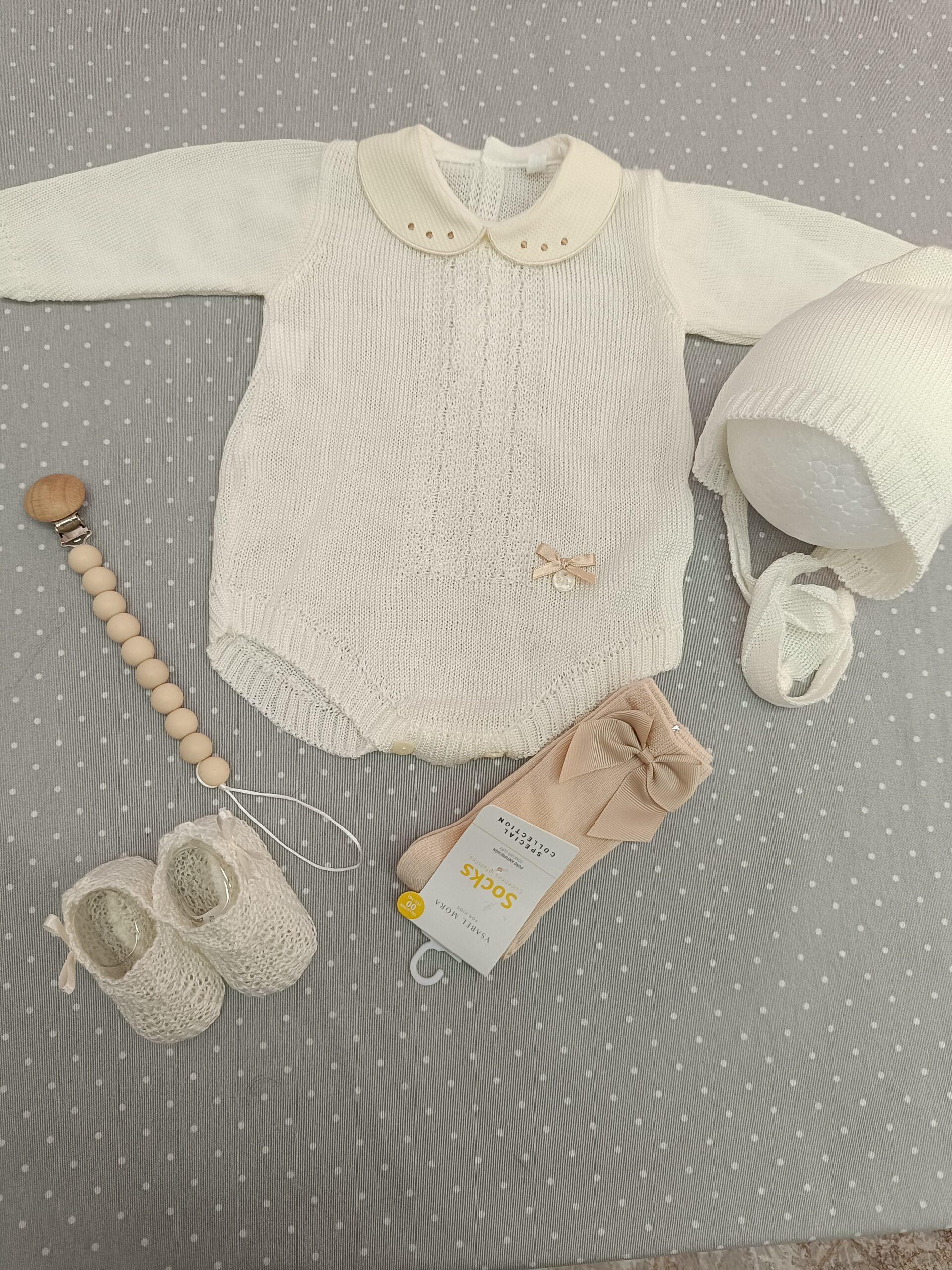 Pelele en talla única de hilo de 0-3meses con capota a juego.
