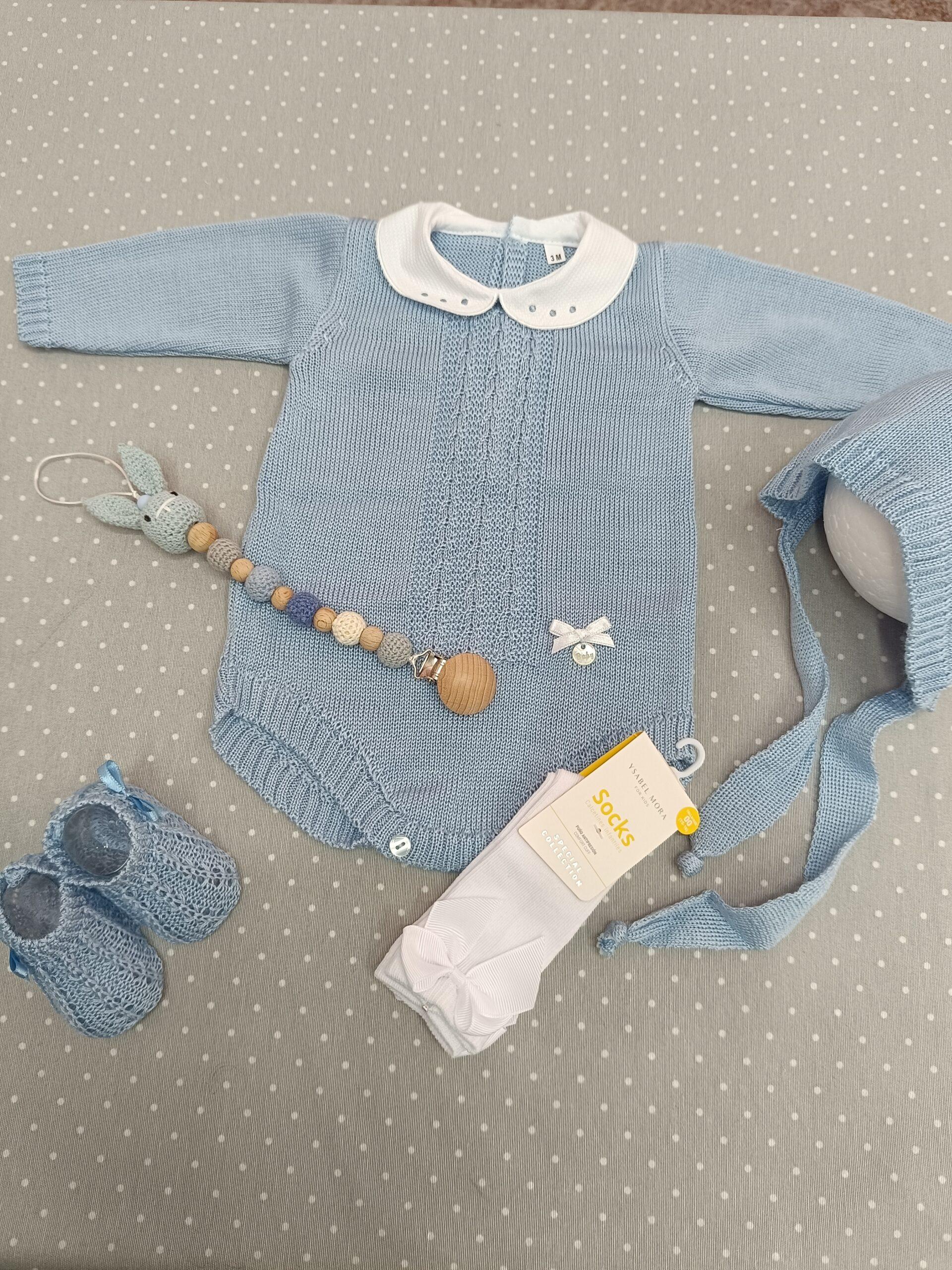 Pelele en talla única de hilo de 0-3meses con capota a juego.
