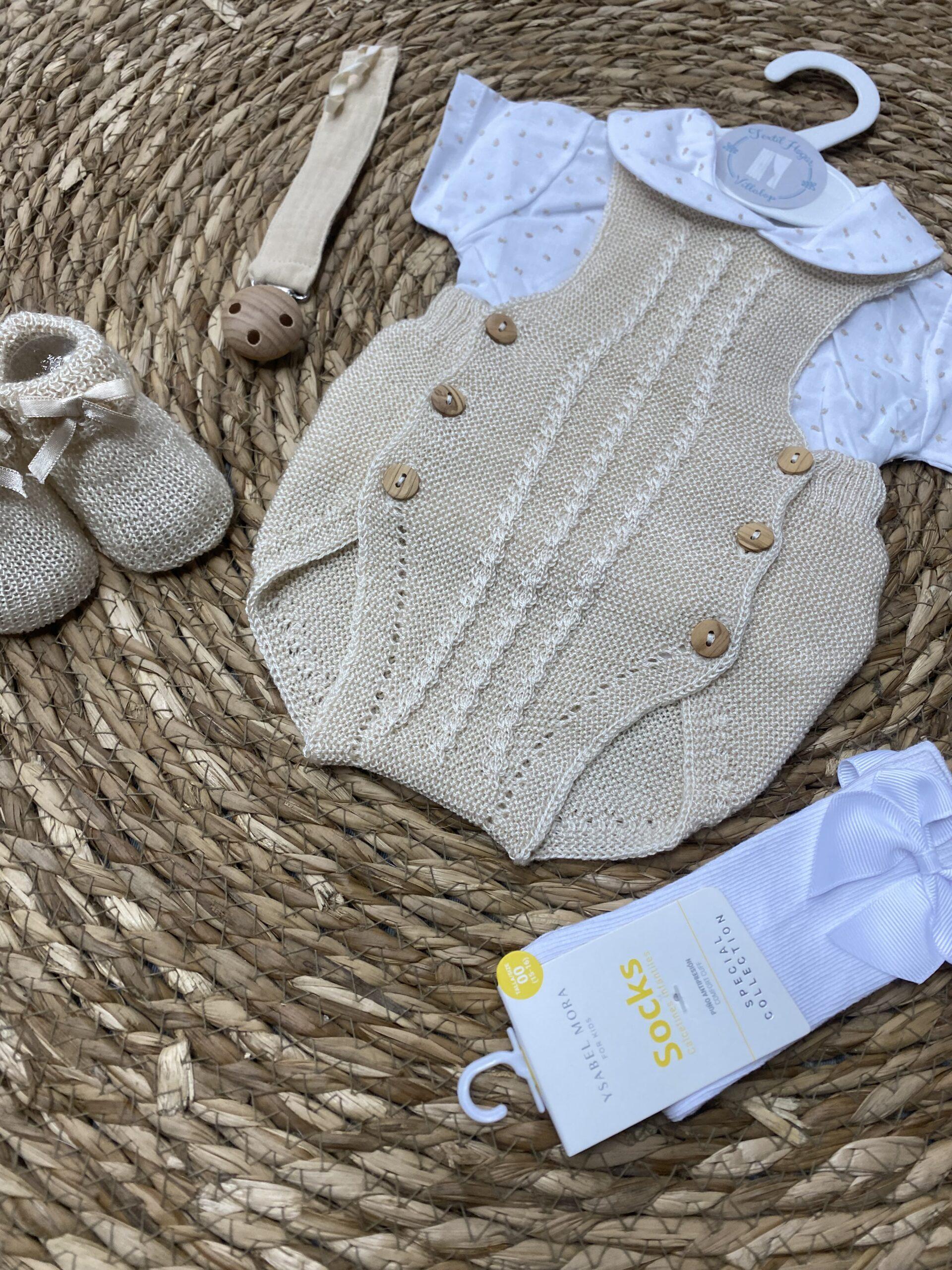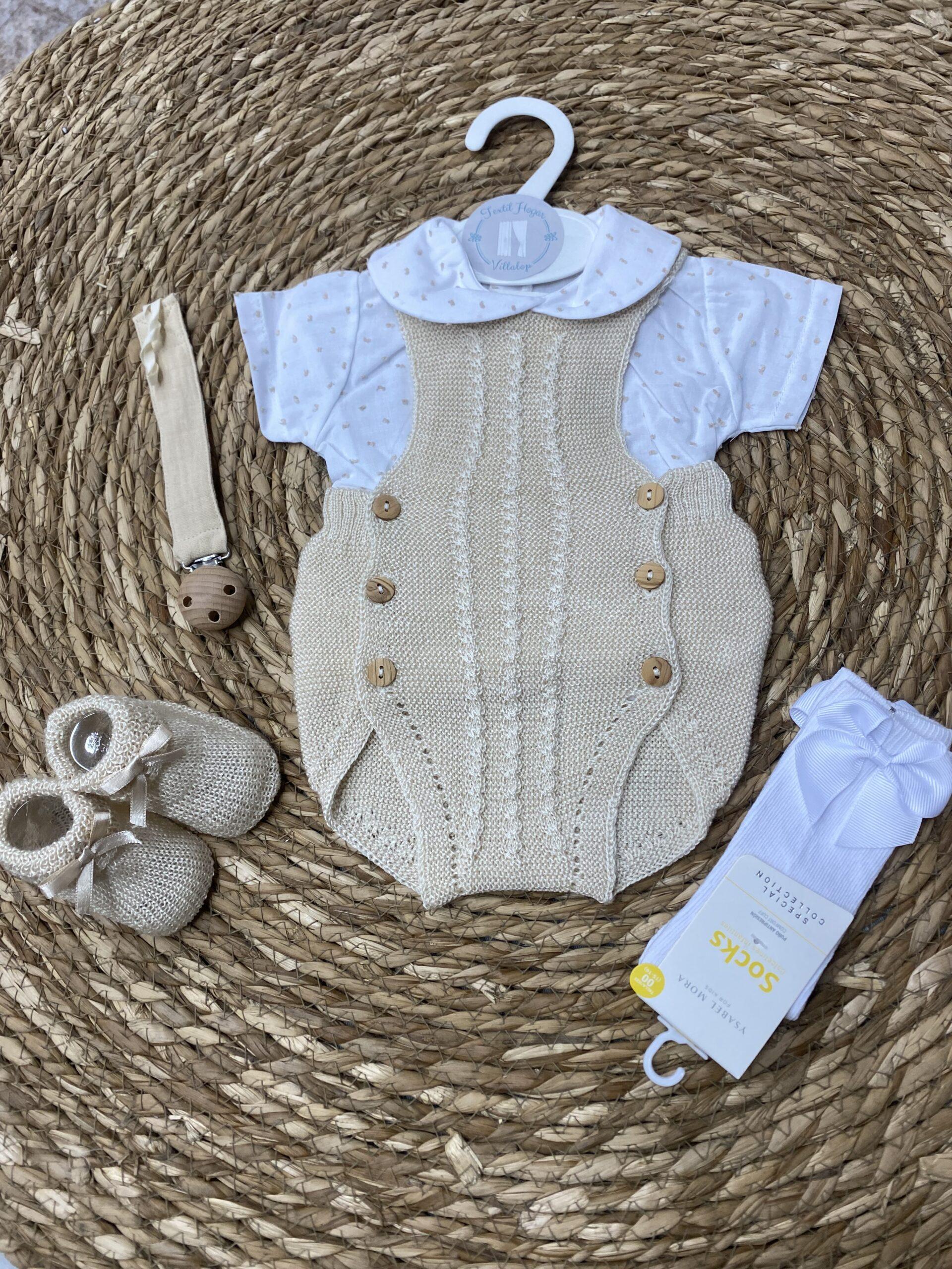 Pelele de hilo con camisa de plumeti a juego. No viene incluido calcetines, patucos o chupeteros