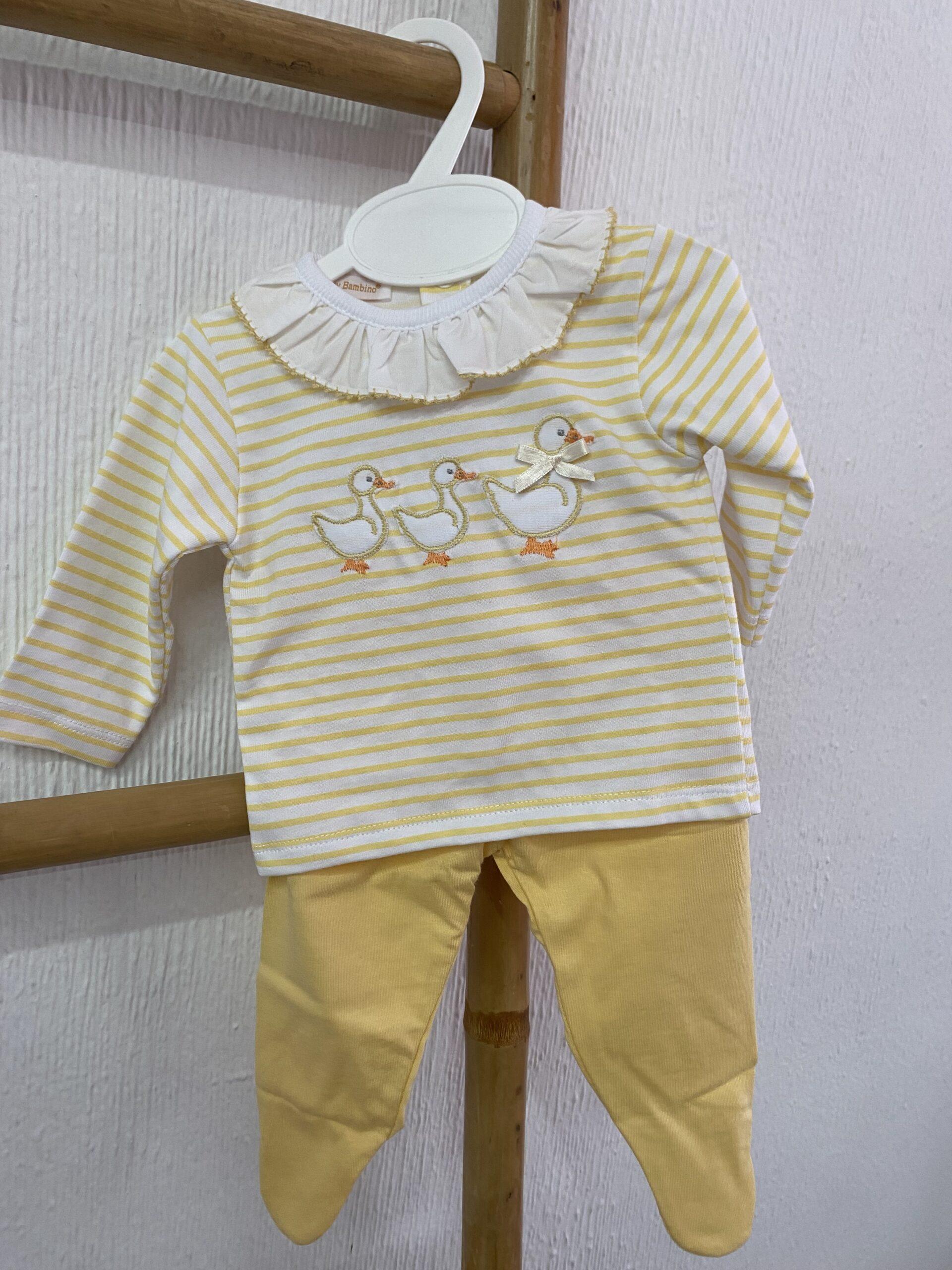 Bonito pijama de dos piezas en talla 0-1m, 100% algodón.