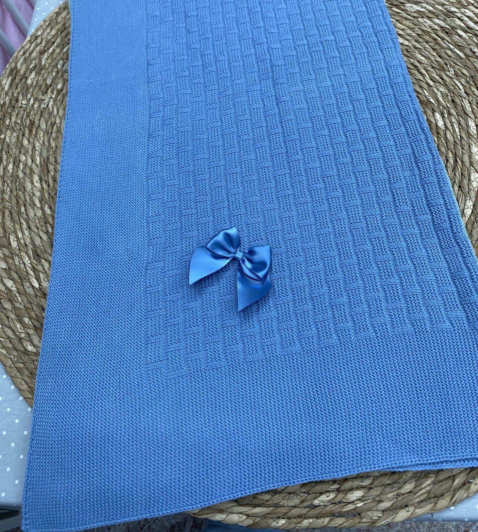 Toquilla de lana en color azul azafata, mide aproximadamente un metro por un metro.